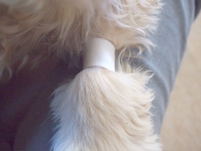 長毛に包帯の姿は、そうめんを束ねている紙のようにも見えます。私は、このお姿を別名「揖保乃糸」と呼んでます。